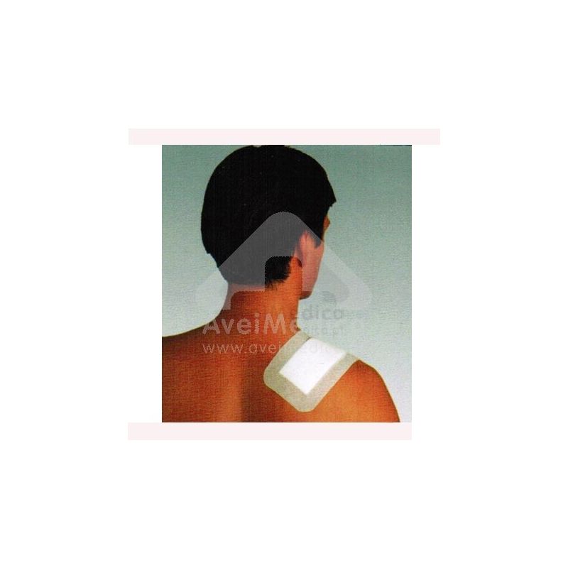 Adesivo hipoalergénico em película plástica porosa com cola de poliacrilato.