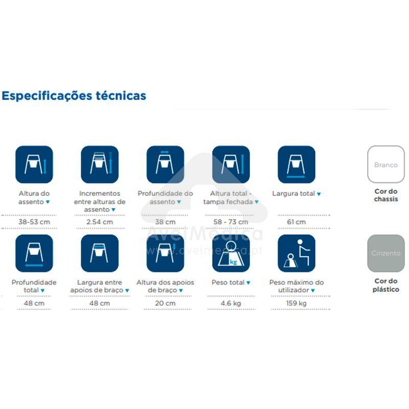 Função 3 em 1-cadeira sanitária, elevador de sanita e quadro sanitário.