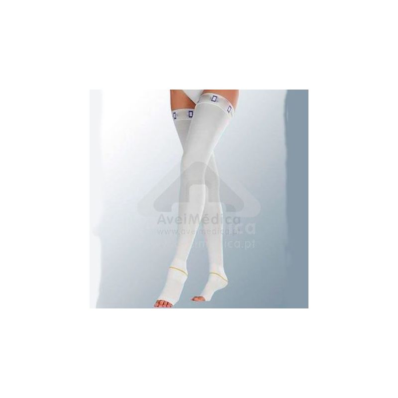 Meias anti-embolia com 23mmHg de compressão no tornozelo.